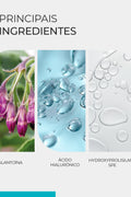 • Alantoína: Equilibra e renova a pele, reduzindo sinais de irritação e promovendo suavidade.