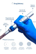 • A caneta se encaixa em diversos tipos de cartuchos, podendo ser de 1, 12, 36 ou 137 (nano) agulhas;
